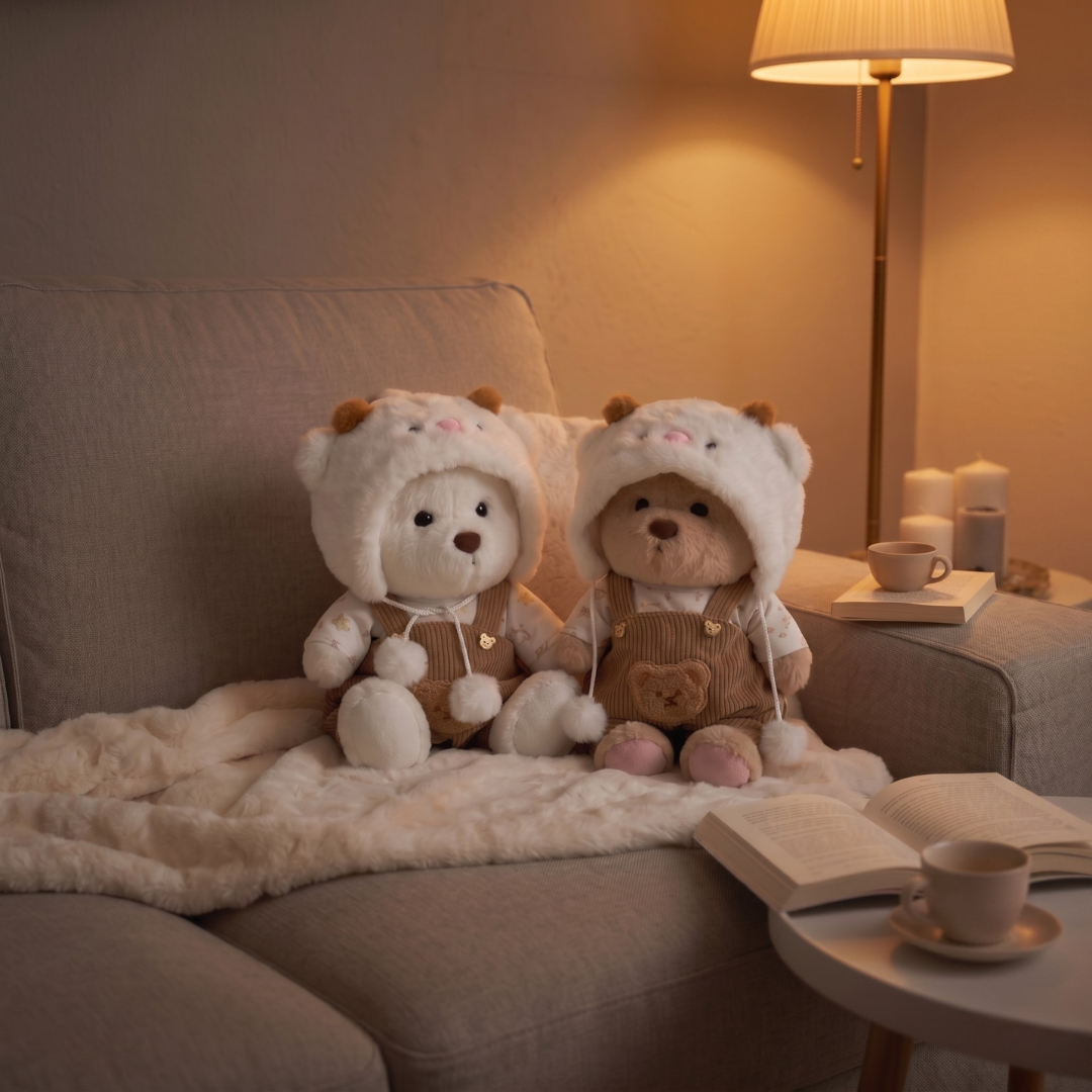 A veces, un espacio bonito no basta; falta algo que conecte contigo. Noah y Coco aportan ese toque que se siente, puedes personalizarlos con su ropita y hacer cualquier rincón más vivo.